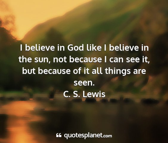 I believe in God like I believe in the sun, not because I can see it, but because of it all things are seen.C. S. Lewis
