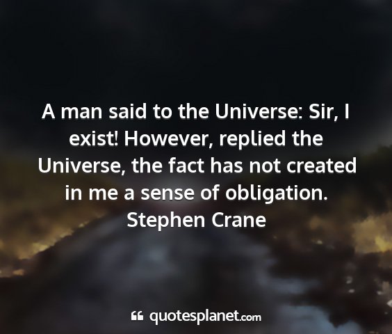 A man said to the Universe: Sir, I exist! However, replied the Universe, the fact has not created in me a sense of obligation.Stephen Crane