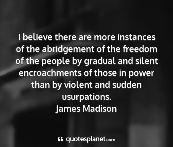 I believe there are more instances of the abridgement of the freedom of the people by gradual and silent encroachments of those in power than by violent and sudden usurpations.James Madison