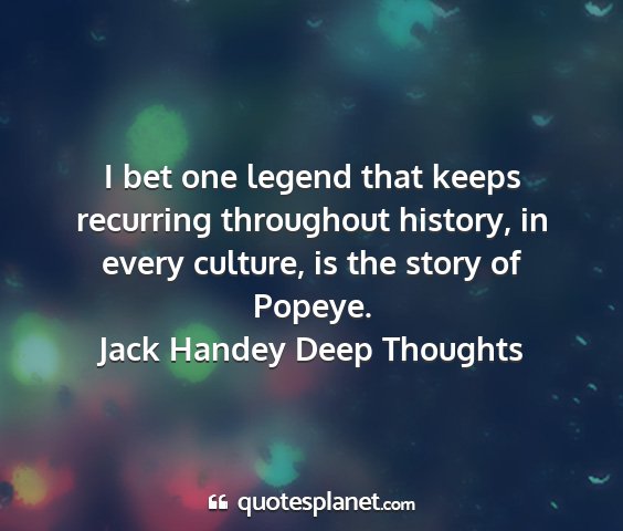 I bet one legend that keeps recurring throughout history, in every culture, is the story of Popeye.Jack Handey Deep Thoughts