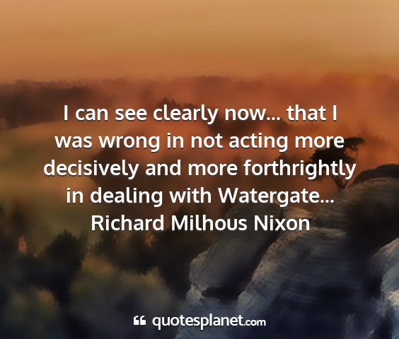 I can see clearly now... that I was wrong in not acting more decisively and more forthrightly in dealing with Watergate...Richard Milhous Nixon