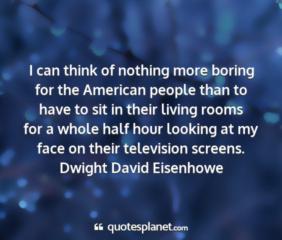 I can think of nothing more boring for the American people than to have to sit in their living rooms for a whole half hour looking at my face on their television screens.Dwight David Eisenhowe