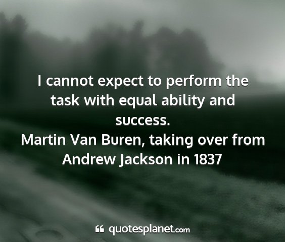 I cannot expect to perform the task with equal ability and success.Martin Van Buren, taking over from Andrew Jackson in 1837