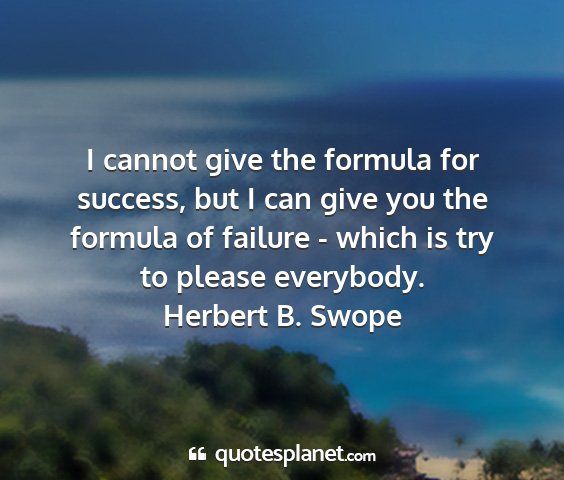 I cannot give the formula for success, but I can give you the formula of failure - which is try to please everybody.Herbert B. Swope