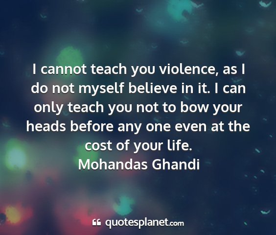 I cannot teach you violence, as I do not myself believe in it. I can only teach you not to bow your heads before any one even at the cost of your life.Mohandas Ghandi