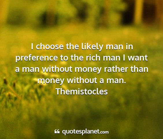 I choose the likely man in preference to the rich man I want a man without money rather than money without a man.Themistocles