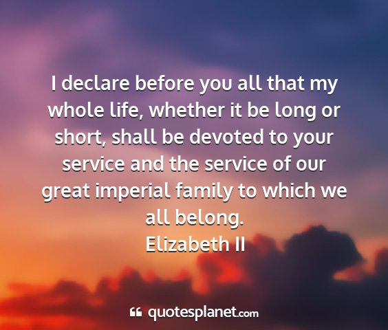 I declare before you all that my whole life, whether it be long or short, shall be devoted to your service and the service of our great imperial family to which we all belong.Elizabeth II
