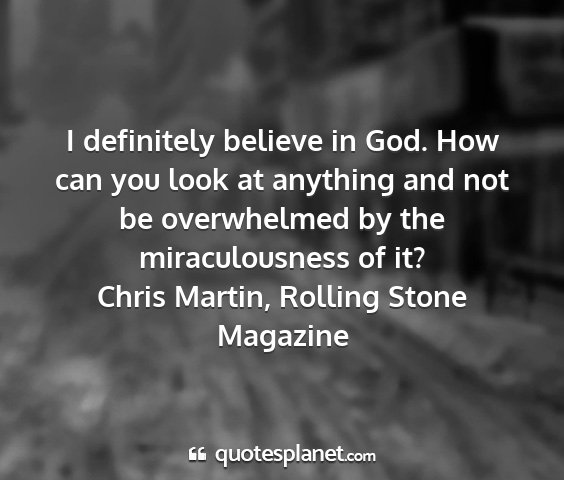 I definitely believe in God. How can you look at anything and not be overwhelmed by the miraculousness of it?Chris Martin, Rolling Stone Magazine