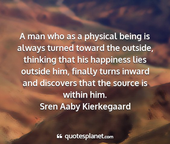 A man who as a physical being is always turned toward the outside, thinking that his happiness lies outside him, finally turns inward and discovers that the source is within him.Sren Aaby Kierkegaard