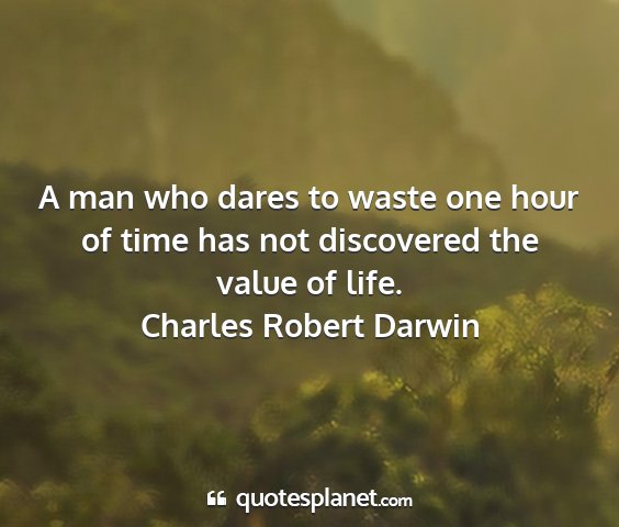 A man who dares to waste one hour of time has not discovered the value of life.