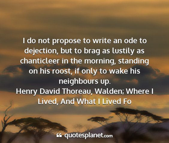 I do not propose to write an ode to dejection, but to brag as lustily as chanticleer in the morning, standing on his roost, if only to wake his neighbours up.Henry David Thoreau, Walden; Where I Lived, And What I Lived Fo