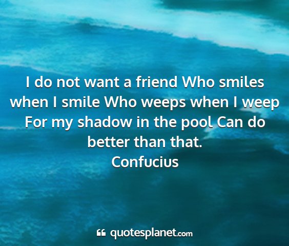 I do not want a friend Who smiles when I smile Who weeps when I weep For my shadow in the pool Can do better than that.Confucius