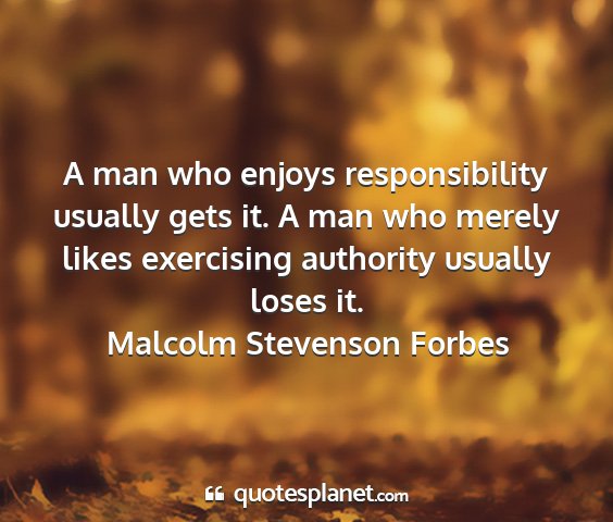 A man who enjoys responsibility usually gets it. A man who merely likes exercising authority usually loses it.Malcolm Stevenson Forbes