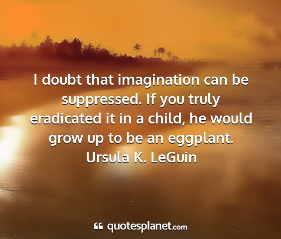 I doubt that imagination can be suppressed. If you truly eradicated it in a child, he would grow up to be an eggplant.Ursula K. LeGuin