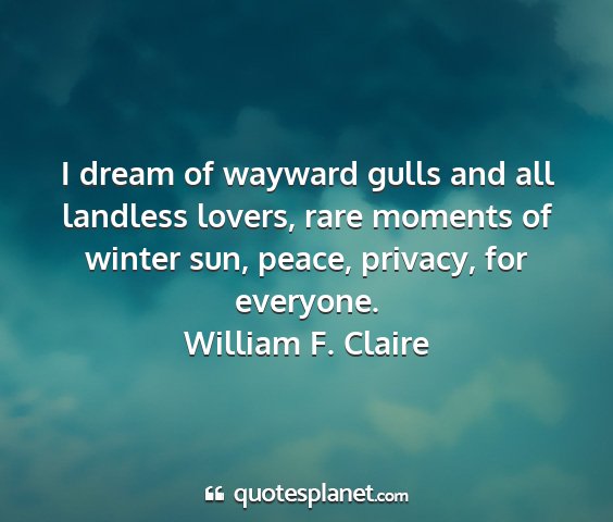 I dream of wayward gulls and all landless lovers, rare moments of winter sun, peace, privacy, for everyone.William F. Claire