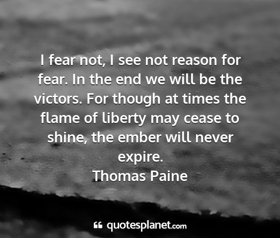 I fear not, I see not reason for fear. In the end we will be the victors. For though at times the flame of liberty may cease to shine, the ember will never expire.Thomas Paine