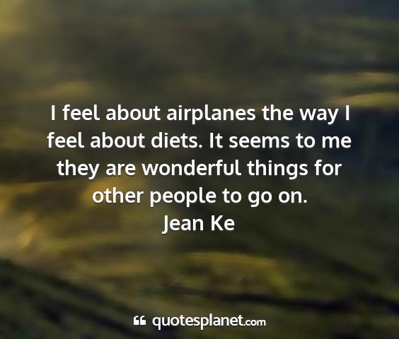 I feel about airplanes the way I feel about diets. It seems to me they are wonderful things for other people to go on.Jean Ke