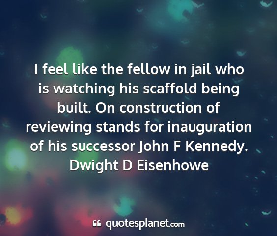 I feel like the fellow in jail who is watching his scaffold being built. On construction of reviewing stands for inauguration of his successor John F Kennedy.Dwight D Eisenhowe