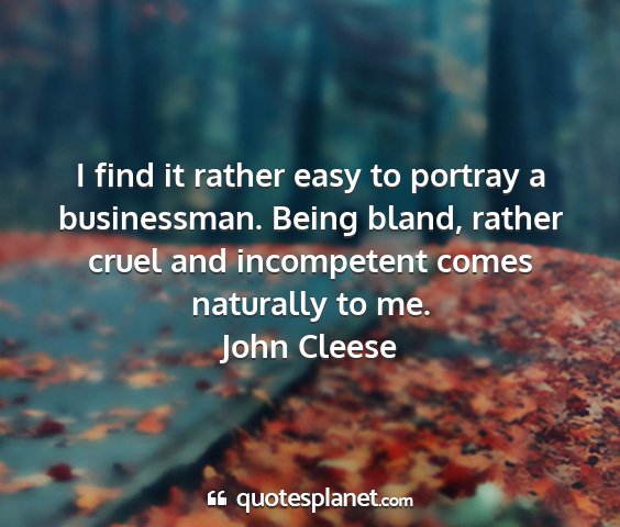 I find it rather easy to portray a businessman. Being bland, rather cruel and incompetent comes naturally to me.John Cleese