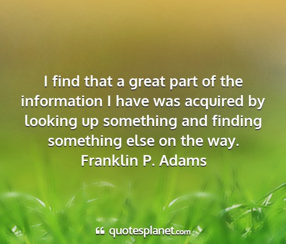 I find that a great part of the information I have was acquired by looking up something and finding something else on the way.Franklin P. Adams