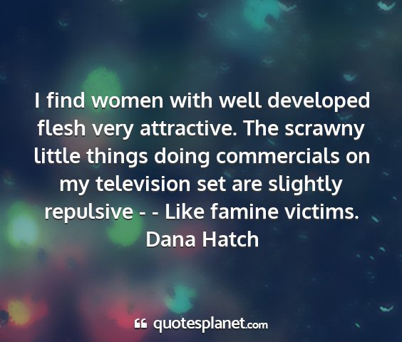 I find women with well developed flesh very attractive. The scrawny little things doing commercials on my television set are slightly repulsive - - Like famine victims.Dana Hatch