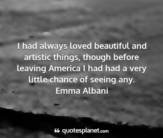 I had always loved beautiful and artistic things, though before leaving America I had had a very little chance of seeing any.Emma Albani