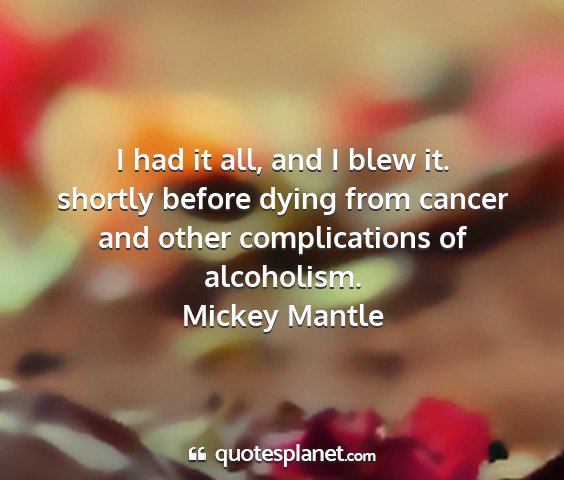 I had it all, and I blew it. shortly before dying from cancer and other complications of alcoholism.Mickey Mantle