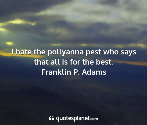 I hate the pollyanna pest who says that all is for the best.