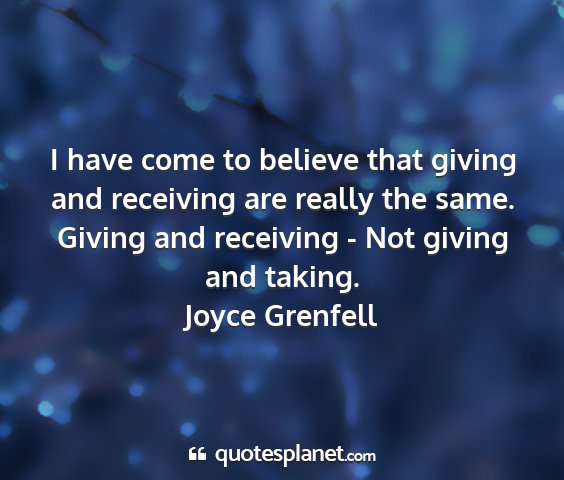 I have come to believe that giving and receiving are really the same. Giving and receiving - Not giving and taking.Joyce Grenfell