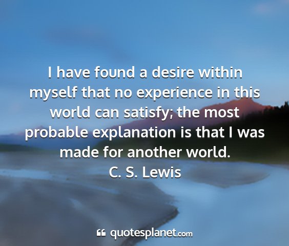 I have found a desire within myself that no experience in this world can satisfy; the most probable explanation is that I was made for another world.C. S. Lewis