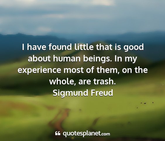 I have found little that is good about human beings. In my experience most of them, on the whole, are trash.Sigmund Freud
