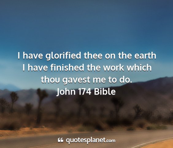 I have glorified thee on the earth I have finished the work which thou gavest me to do.John 174 Bible