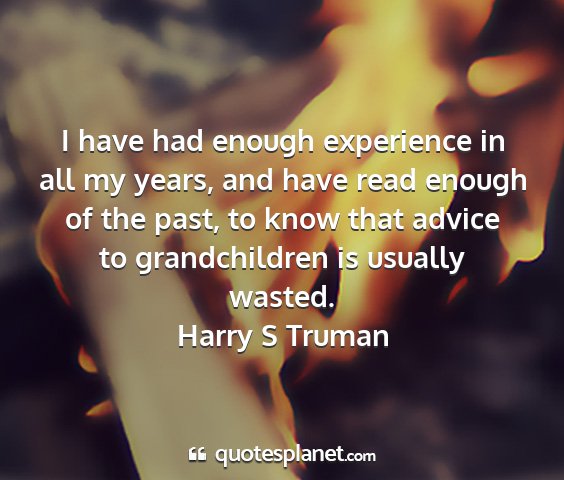 I have had enough experience in all my years, and have read enough of the past, to know that advice to grandchildren is usually wasted.Harry S Truman