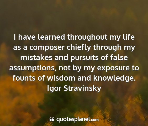 I have learned throughout my life as a composer chiefly through my mistakes and pursuits of false assumptions, not by my exposure to founts of wisdom and knowledge.Igor Stravinsky