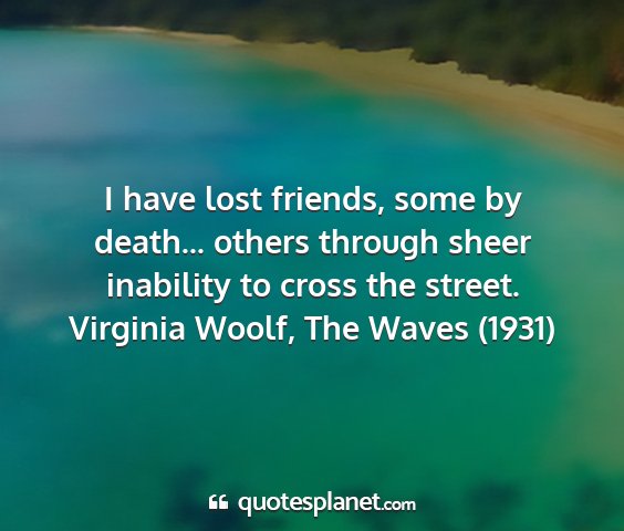 I have lost friends, some by death... others through sheer inability to cross the street.Virginia Woolf, The Waves (1931)