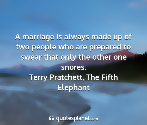 A marriage is always made up of two people who are prepared to swear that only the other one snores.Terry Pratchett, The Fifth Elephant