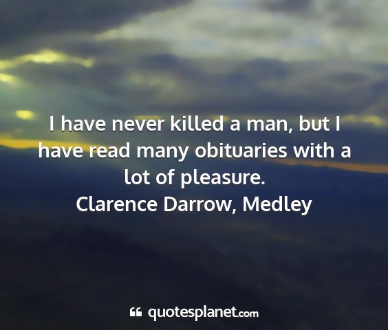 I have never killed a man, but I have read many obituaries with a lot of pleasure.Clarence Darrow, Medley