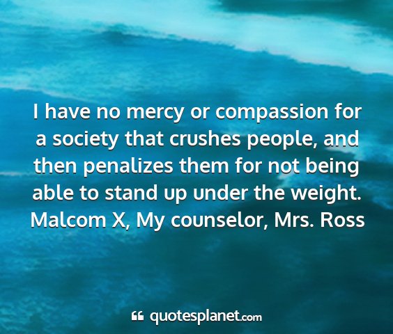 I have no mercy or compassion for a society that crushes people, and then penalizes them for not being able to stand up under the weight.Malcom X, My counselor, Mrs. Ross