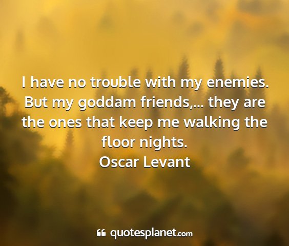 I have no trouble with my enemies. But my goddam friends,... they are the ones that keep me walking the floor nights.Oscar Levant