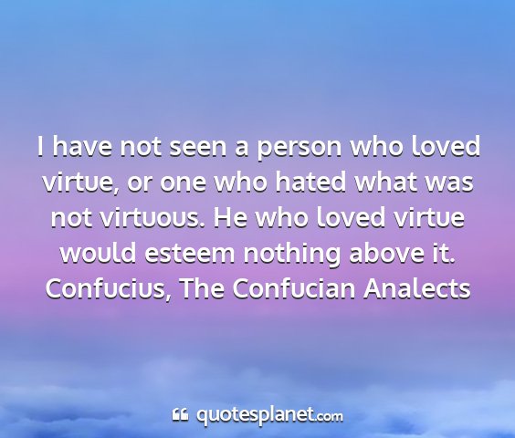 I have not seen a person who loved virtue, or one who hated what was not virtuous. He who loved virtue would esteem nothing above it.Confucius, The Confucian Analects