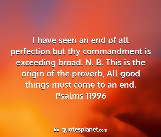 I have seen an end of all perfection but thy commandment is exceeding broad. N. B. This is the origin of the proverb, All good things must come to an end.Psalms 11996