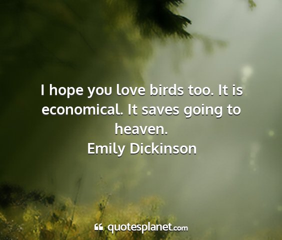 I hope you love birds too. It is economical. It saves going to heaven.