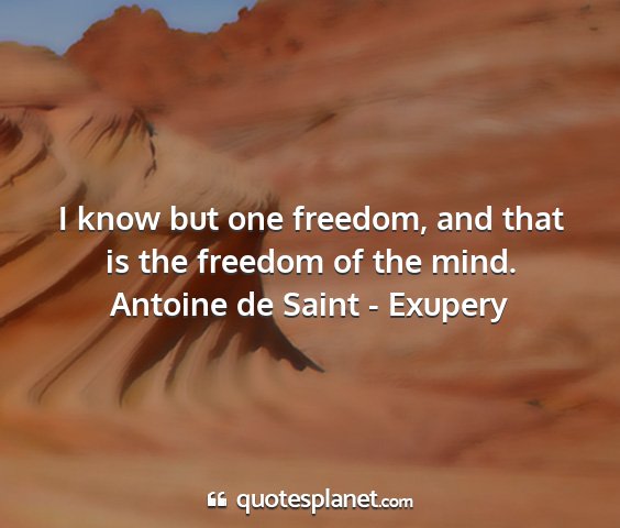 I know but one freedom, and that is the freedom of the mind.