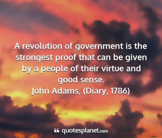 A revolution of government is the strongest proof that can be given by a people of their virtue and good sense.John Adams, (Diary, 1786)