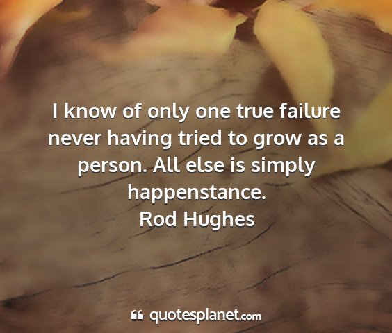 I know of only one true failure never having tried to grow as a person. All else is simply happenstance.Rod Hughes