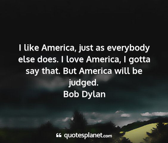 I like America, just as everybody else does. I love America, I gotta say that. But America will be judged.Bob Dylan