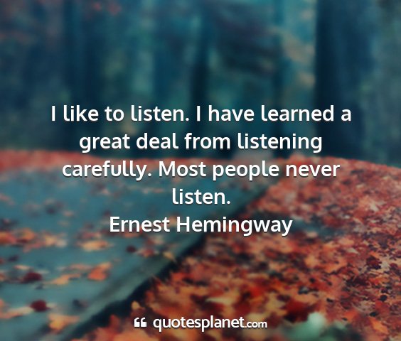 I like to listen. I have learned a great deal from listening carefully. Most people never listen.Ernest Hemingway