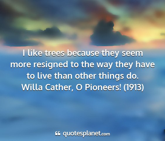 I like trees because they seem more resigned to the way they have to live than other things do.Willa Cather, O Pioneers! (1913)