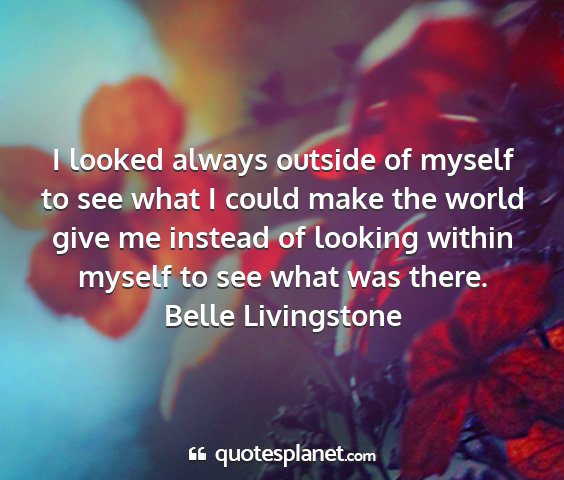 I looked always outside of myself to see what I could make the world give me instead of looking within myself to see what was there.Belle Livingstone