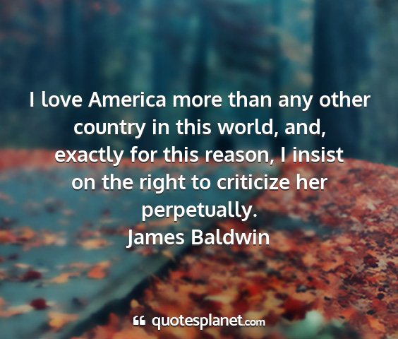 I love America more than any other country in this world, and, exactly for this reason, I insist on the right to criticize her perpetually.James Baldwin